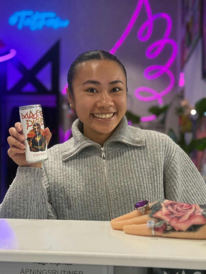 Energidrikker er ikke helse på boks. Koffein hjelper deg ikke så veldig mye når du skal ligge helt stille i flere timer, og sukker gjør vel egentlig bare at du vil vrikke enda mer på deg midt i skyggeleggingen på den nye tatoveringen din.